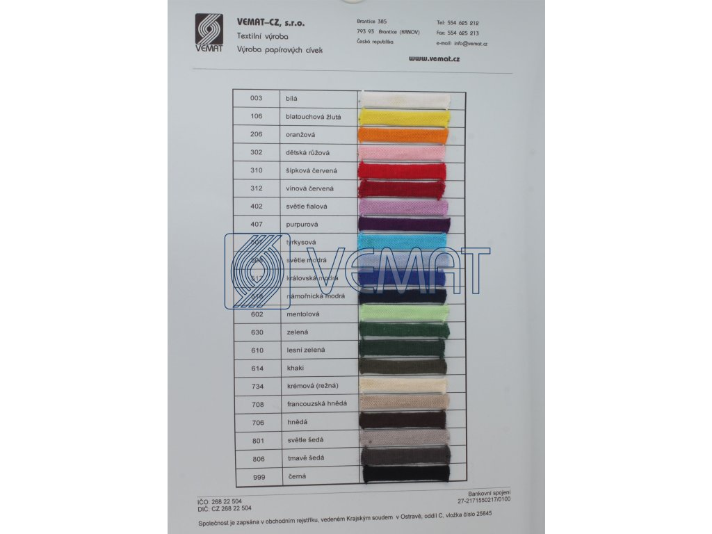 Barevnice BA oděvních šňůr