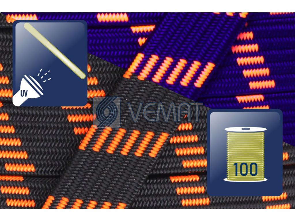 Dutinový pružný popruh 15mm-č/fl.oranžová-cívka 100m