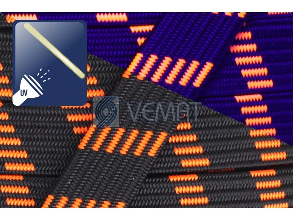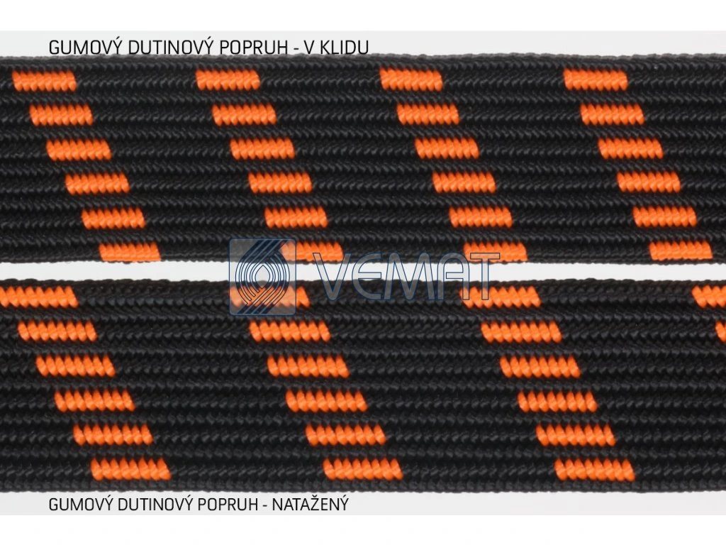 Dutinový pružný popruh 15mm-č/fl.oranžová