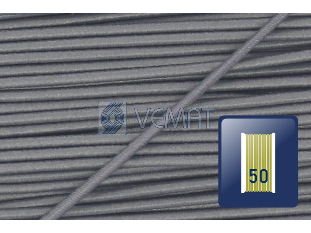 Klobouková guma 1,4mm-grafit.šedá-karta 50m