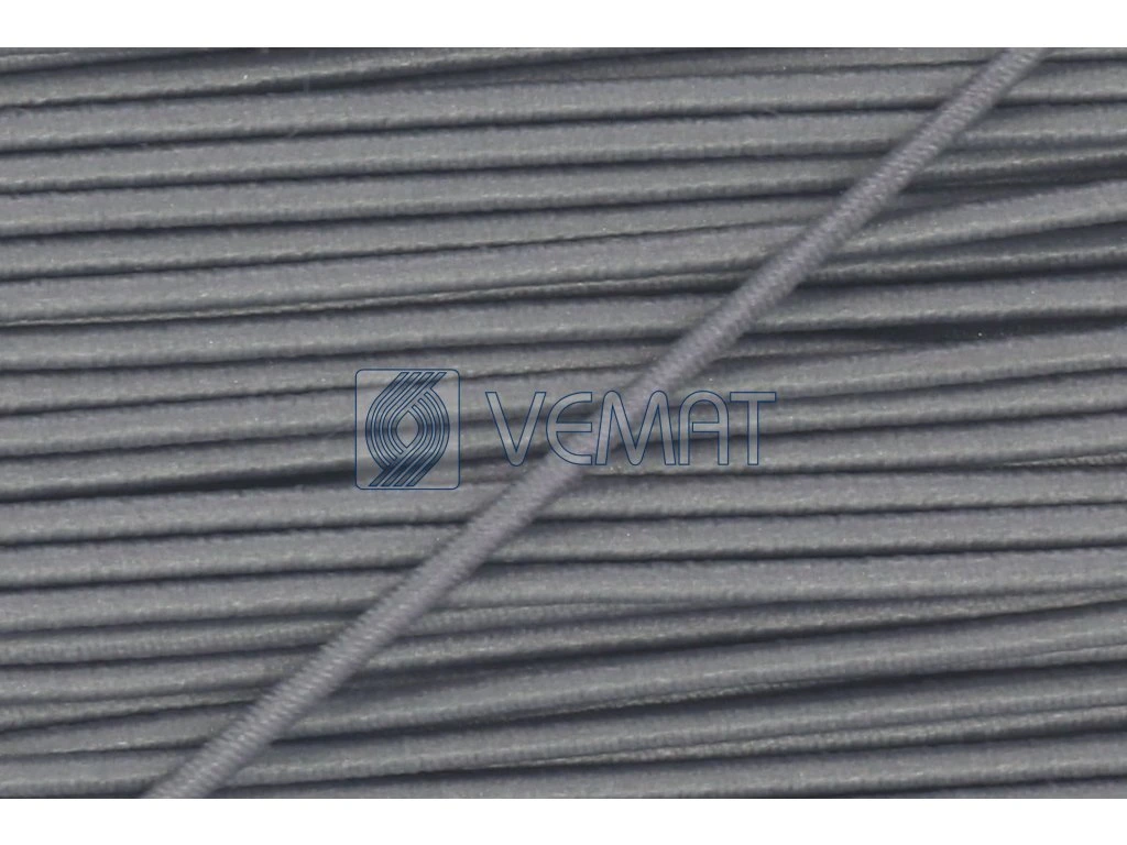 Splétaná klobouková guma s jádrem o průměru 1,4 mm. Díky svému pevnému jádru a opletu z texturovaného polyesteru je odolná vůči vnějším vlivům, dobře drží tvar a zároveň si zachovává potřebnou pružnost.