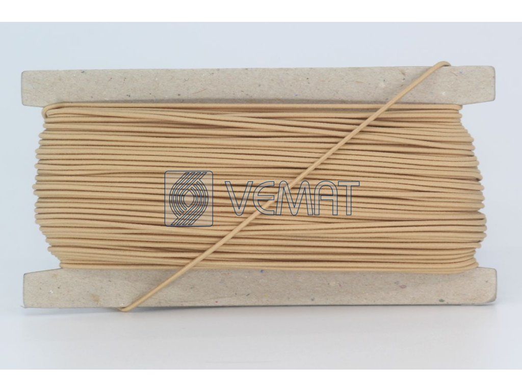 Splétaná klobouková guma s jádrem o průměru 1,4 mm. Díky svému pevnému jádru a opletu z texturovaného polyesteru je odolná vůči vnějším vlivům, dobře drží tvar a zároveň si zachovává potřebnou pružnost.