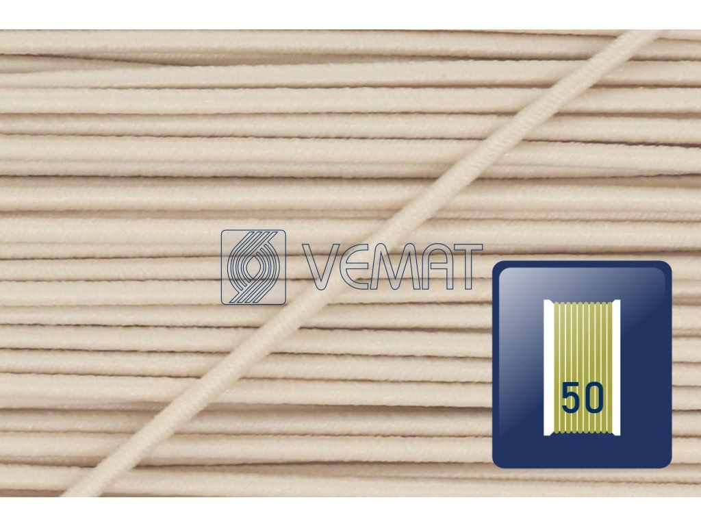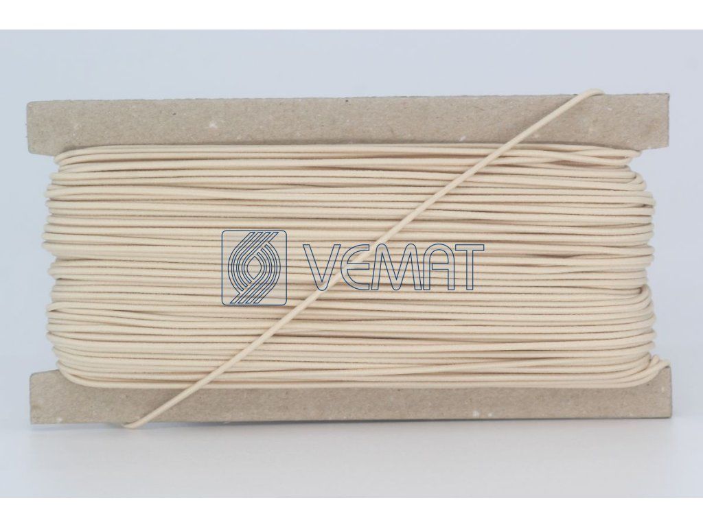 Splétaná klobouková guma s jádrem o průměru 1,4 mm. Díky svému pevnému jádru a opletu z texturovaného polyesteru je odolná vůči vnějším vlivům, dobře drží tvar a zároveň si zachovává potřebnou pružnost.