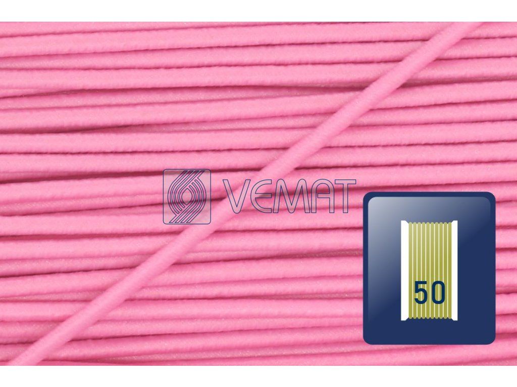 Splétaná klobouková guma s jádrem o průměru 1,4 mm. Díky svému pevnému jádru a opletu z texturovaného polyesteru je odolná vůči vnějším vlivům, dobře drží tvar a zároveň si zachovává potřebnou pružnost.
