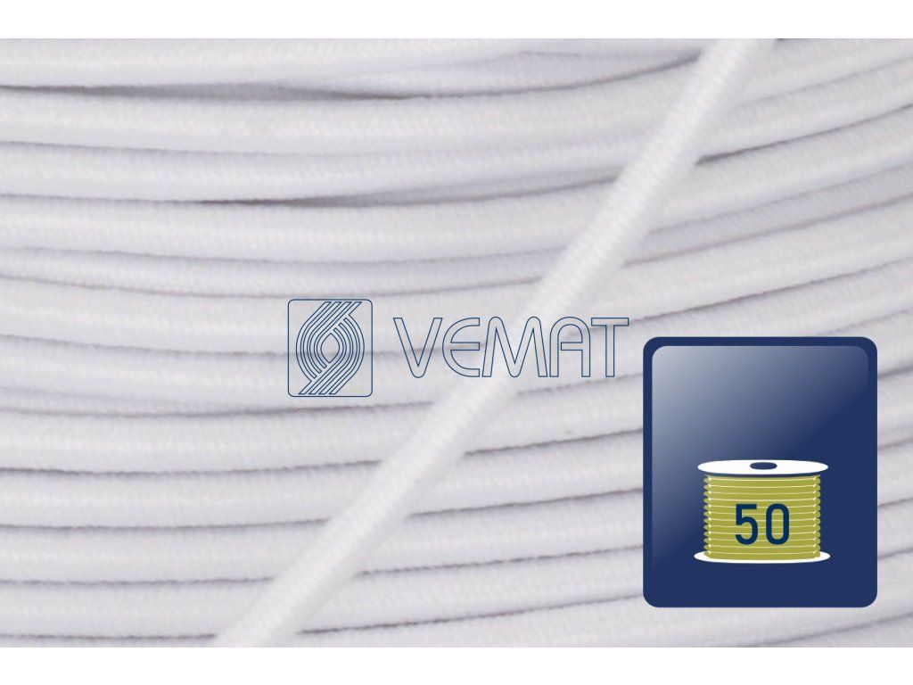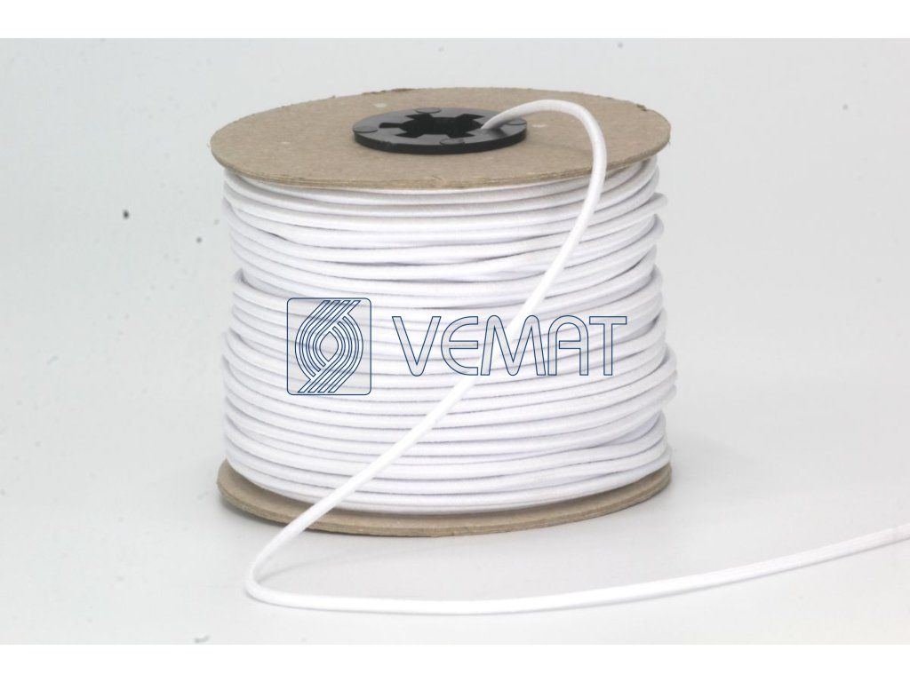 Splétaná klobouková guma s jádrem o průměru 1,8 mm. Díky svému pevnému jádru a opletu z texturovaného polyesteru je odolná vůči vnějším vlivům, dobře drží tvar a zároveň si zachovává potřebnou pružnost.