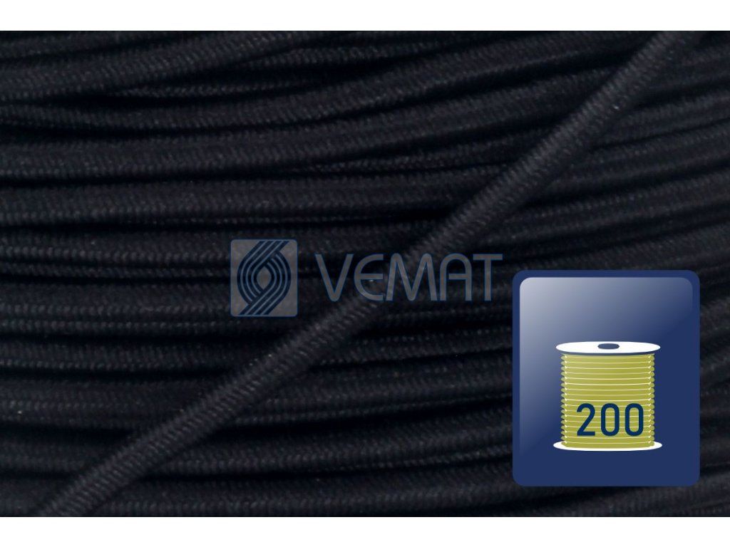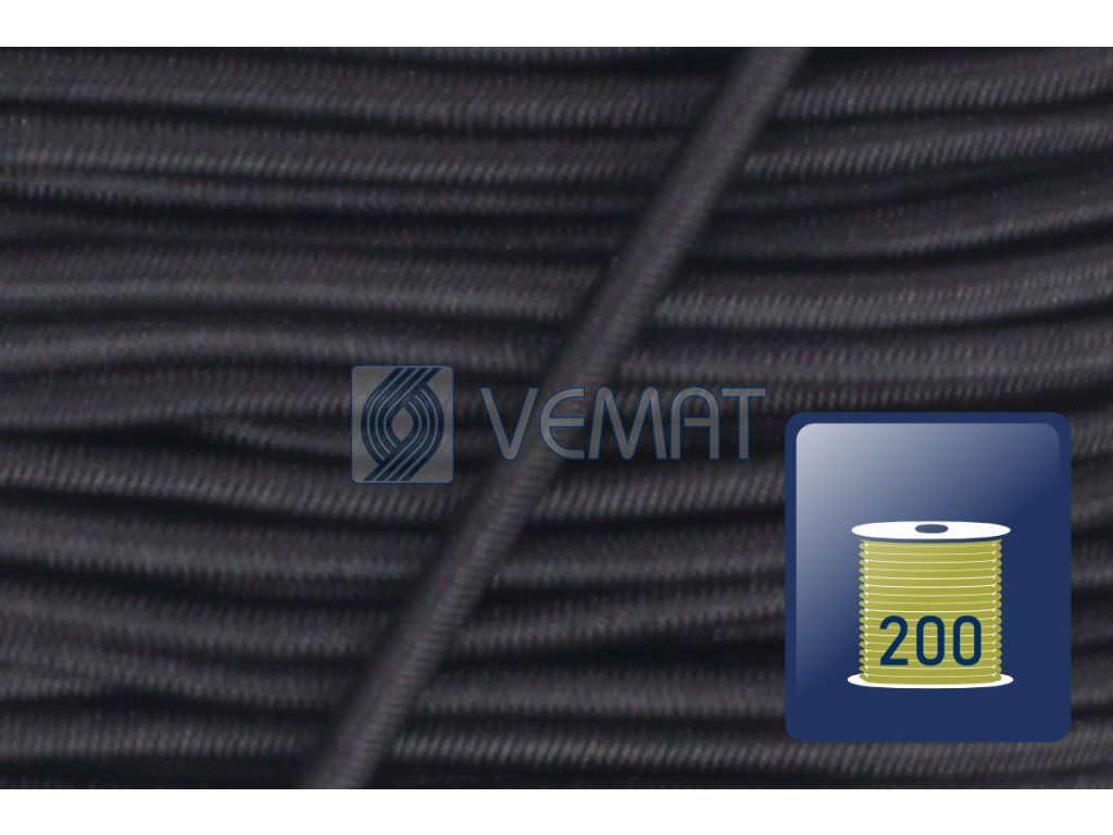 Splétaná klobouková guma s jádrem o průměru 1,8 mm. Díky svému pevnému jádru a opletu z texturovaného polyesteru je odolná vůči vnějším vlivům, dobře drží tvar a zároveň si zachovává potřebnou pružnost.
