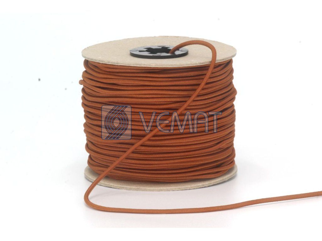 Splétaná klobouková guma s jádrem o průměru 1,8 mm. Díky svému pevnému jádru a opletu z texturovaného polyesteru je odolná vůči vnějším vlivům, dobře drží tvar a zároveň si zachovává potřebnou pružnost.