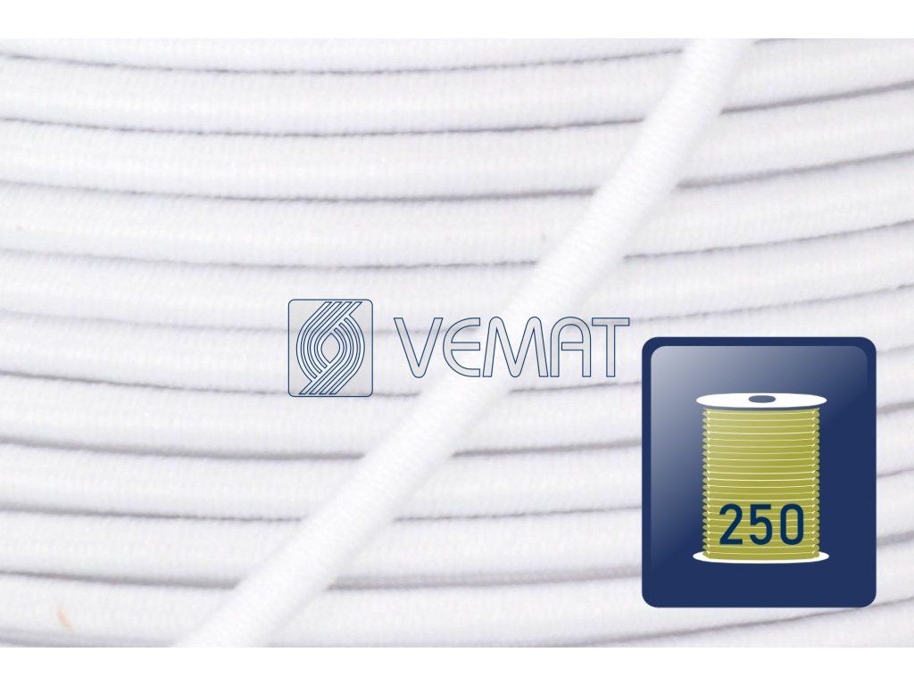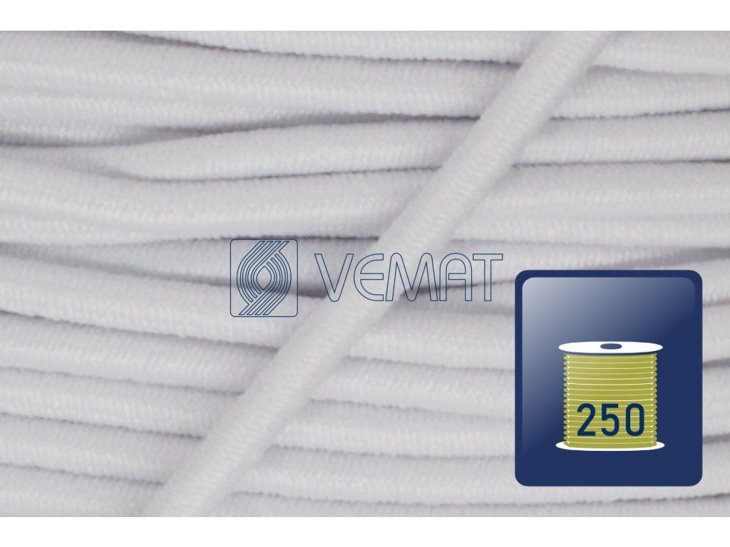 Splétaná klobouková guma s jádrem o průměru 1,8 mm. Díky svému pevnému jádru a opletu z texturovaného polyesteru je odolná vůči vnějším vlivům, dobře drží tvar a zároveň si zachovává potřebnou pružnost.