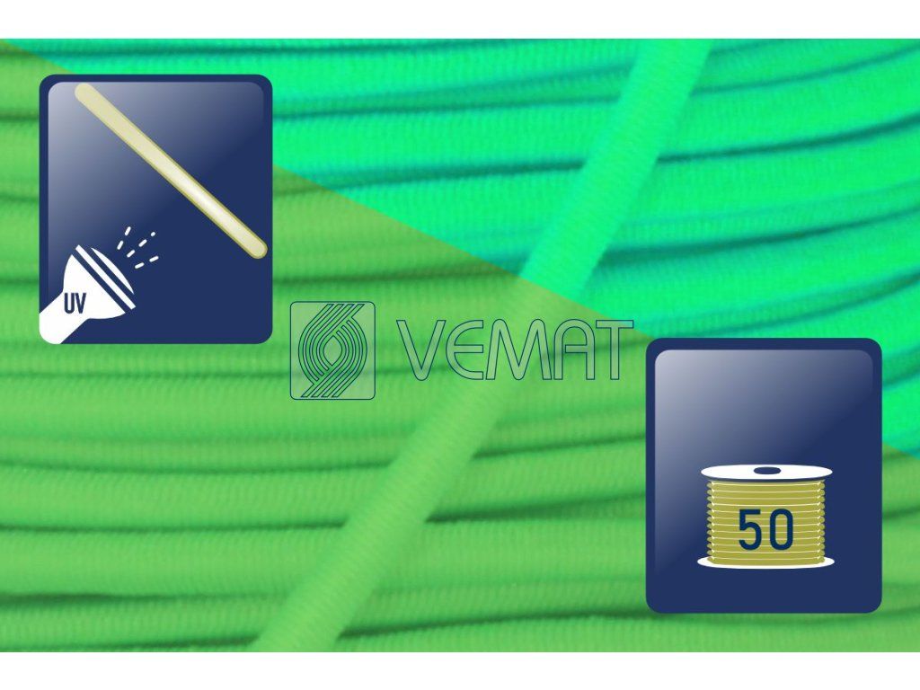 Splétaná klobouková guma s jádrem o průměru 1,8 mm. Díky svému pevnému jádru a opletu z texturovaného polyesteru je odolná vůči vnějším vlivům, dobře drží tvar a zároveň si zachovává potřebnou pružnost.