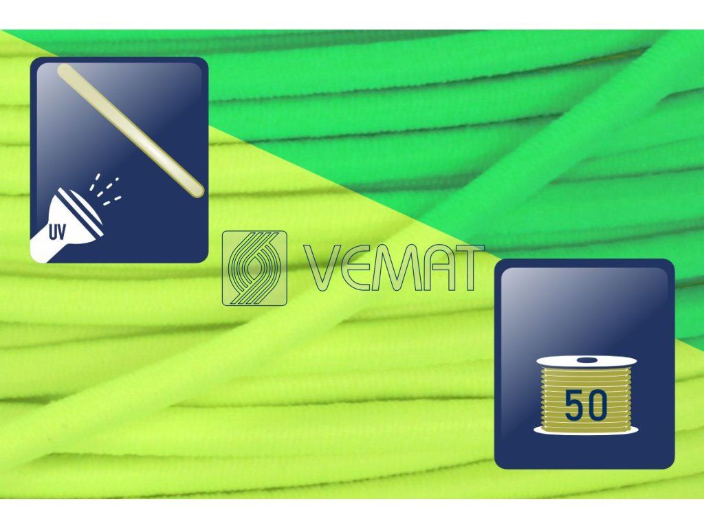 Splétaná klobouková guma s jádrem o průměru 1,8 mm. Díky svému pevnému jádru a opletu z texturovaného polyesteru je odolná vůči vnějším vlivům, dobře drží tvar a zároveň si zachovává potřebnou pružnost.