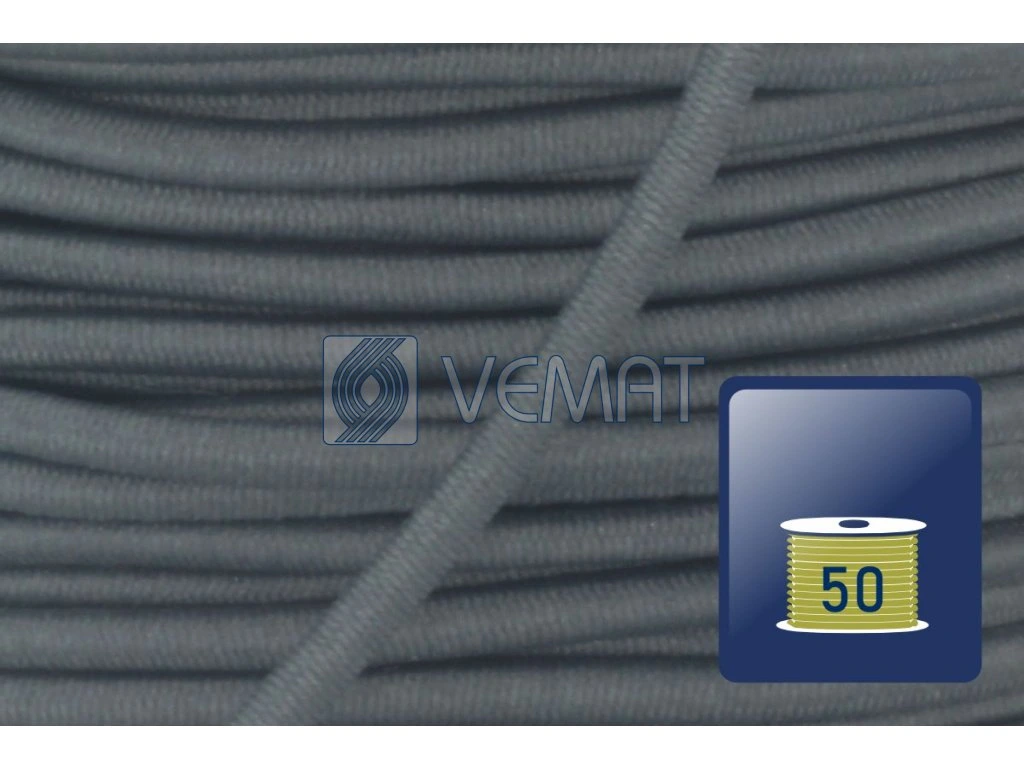 Splétaná klobouková guma s jádrem o průměru 1,8 mm. Díky svému pevnému jádru a opletu z texturovaného polyesteru je odolná vůči vnějším vlivům, dobře drží tvar a zároveň si zachovává potřebnou pružnost.