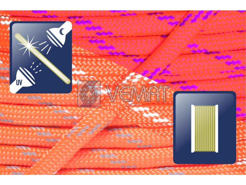 Paracord 550-Neon Orange reflective strip-karta 25m
