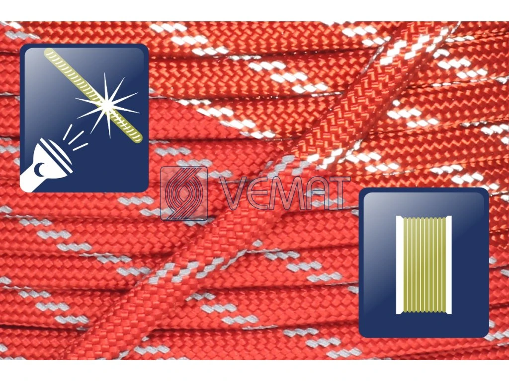Paracord 550-Red Chilli reflective strip-karta 25m