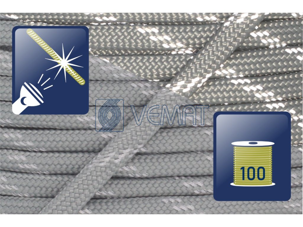 Paracord 550-Smoke Grey reflective strip-cívka 100m