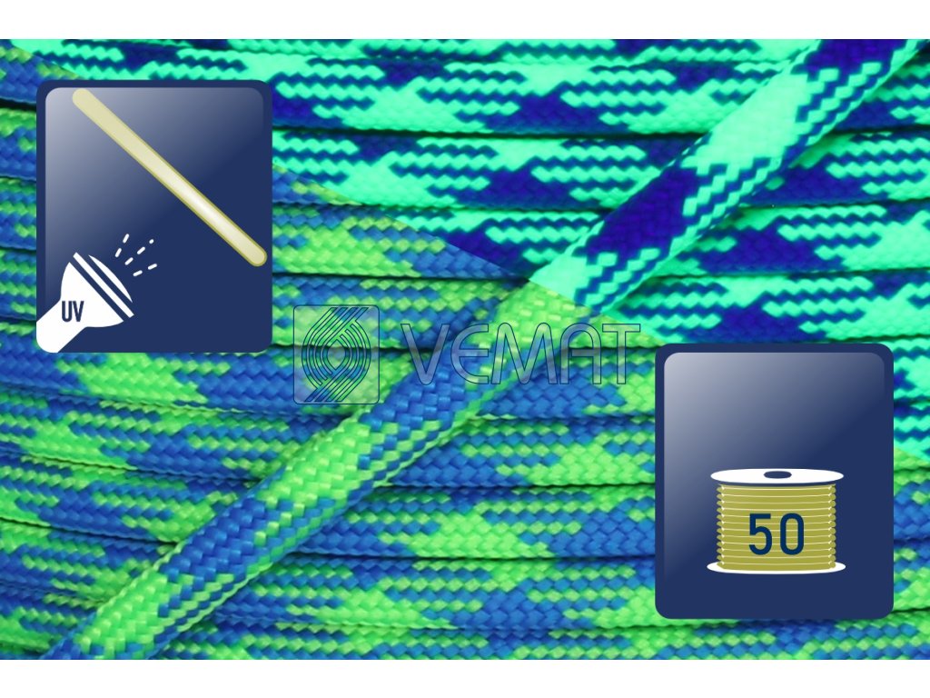 Paracord 550-Ultra Neon Green/Greece Blue-cívka 50m