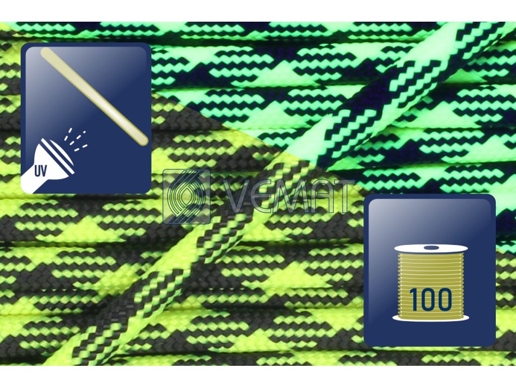 Paracord 550-Ultra Neon Yellow/Black-cívka 100m