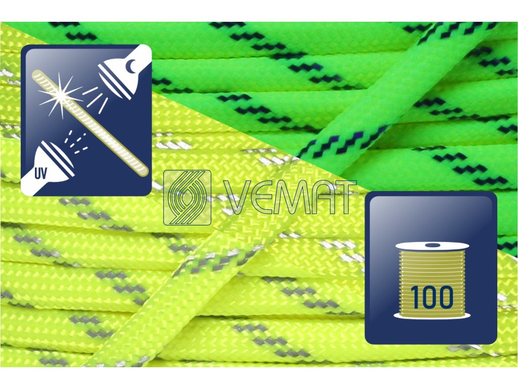 Paracord 550-Ultra Neon Yellow reflective strip-cívka 100m