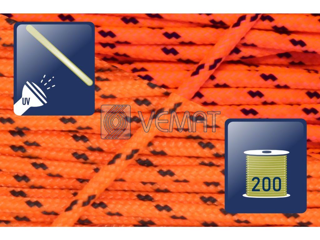 Šestnáctipramenná šňůra s jádrem o průměru 2 mm, vyrobená technologií splétáním. Šňůra je vyrobena z technického polyesteru, který se vyznačuje vysokou mechanickou odolností a stálostí ve vnějším prostředí.