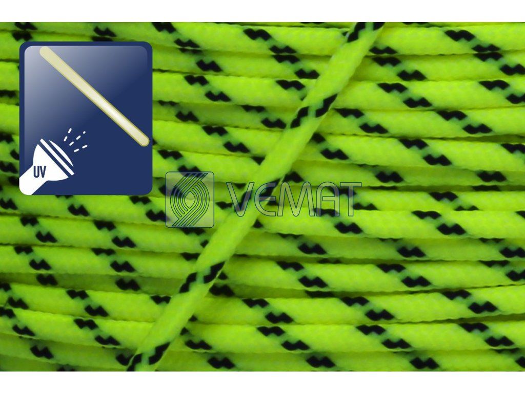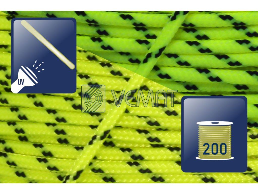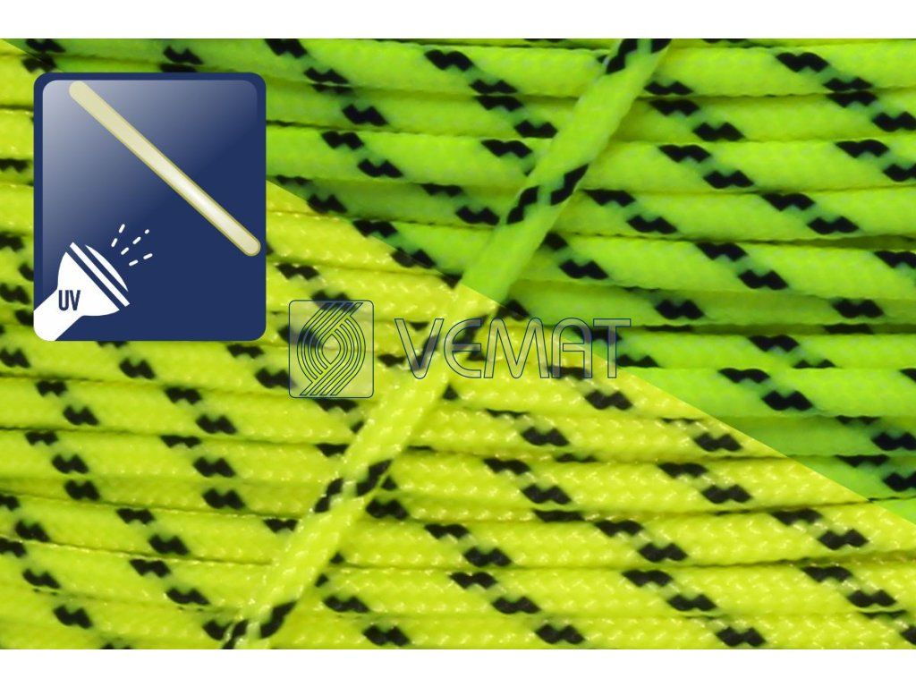 Šestnáctipramenná šňůra s jádrem o průměru 2 mm, vyrobená technologií splétáním. Šňůra je vyrobena z technického polyesteru, který se vyznačuje vysokou mechanickou odolností a stálostí ve vnějším prostředí.