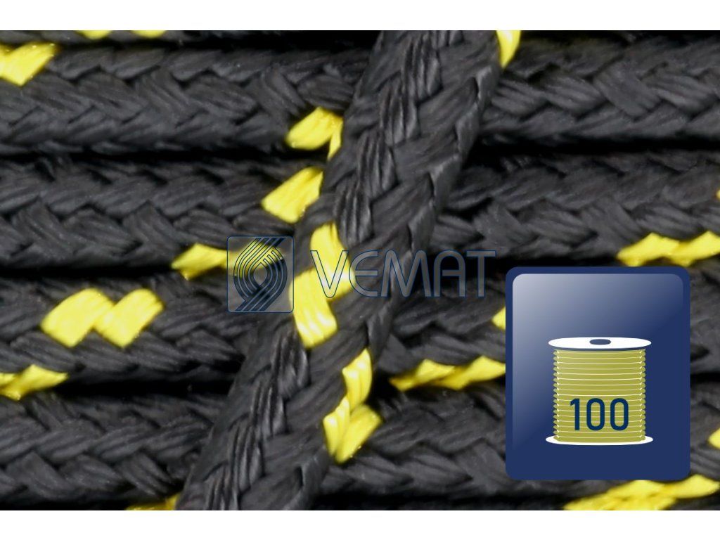PES 16-pr.s jádrem 7mm-černá/žlutá-cívka100m