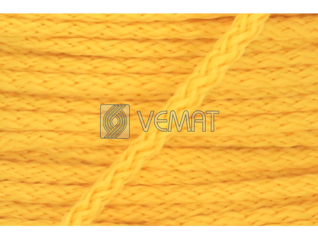 Osnovně pletená polyesterová šňůra o průměru 4 mm je oblíbená pro svou měkkost, poddajnost a barevnou škálu. Kromě oděvních účelů se používá také pro háčkování (pufy, koberečky) nebo drhání, výrobu hraček. Výhoda polyesteru je vysoká životnost, odolnost proti povětrnostním vlivům (na rozdíl od přírodních materiálů).