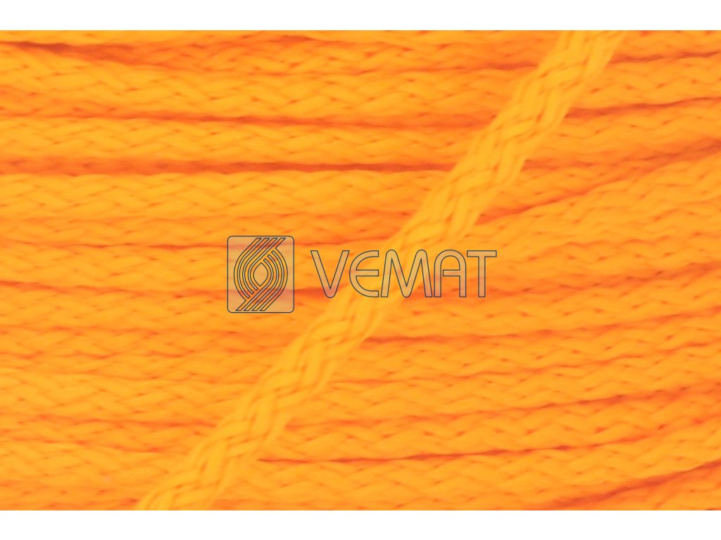Osnovně pletená polyesterová šňůra o průměru 4 mm je oblíbená pro svou měkkost, poddajnost a barevnou škálu. Kromě oděvních účelů se používá také pro háčkování (pufy, koberečky) nebo drhání, výrobu hraček. Výhoda polyesteru je vysoká životnost, odolnost proti povětrnostním vlivům (na rozdíl od přírodních materiálů).