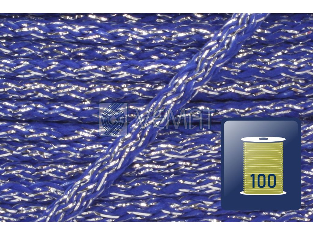 PES 4mm-král.modrá/lurex stříbro-cívka 100m