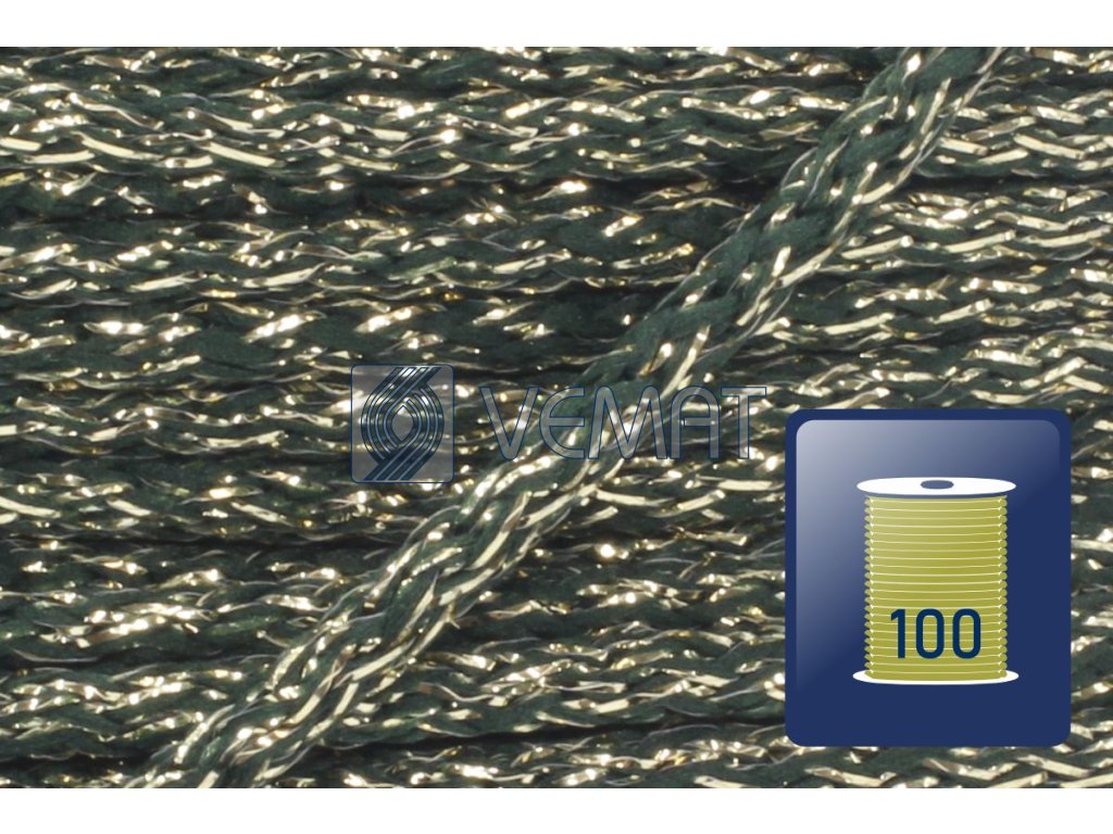 PES 4mm-lesní zelená/lurex zlato-cívka 100m