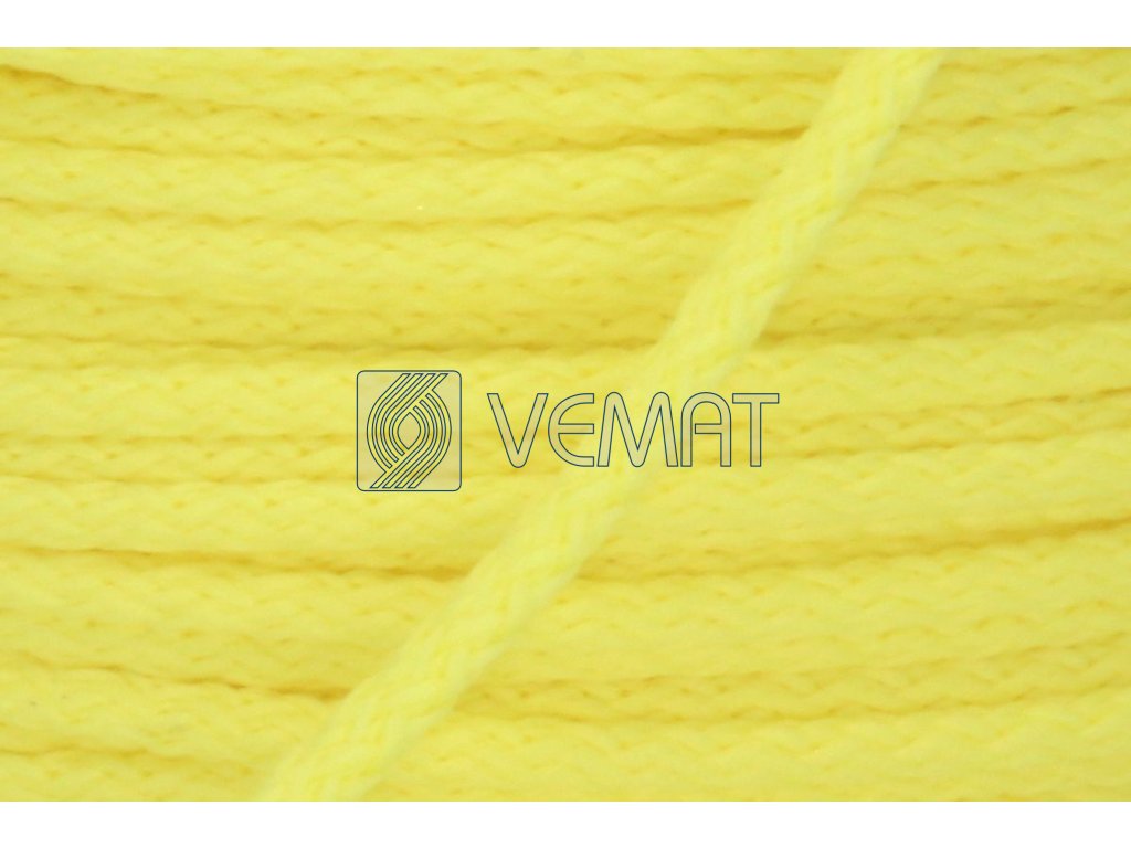 Osnovně pletená polyesterová šňůra o průměru 4 mm je oblíbená pro svou měkkost, poddajnost a barevnou škálu. Kromě oděvních účelů se používá také pro háčkování (pufy, koberečky) nebo drhání, výrobu hraček. Výhoda polyesteru je vysoká životnost, odolnost proti povětrnostním vlivům (na rozdíl od přírodních materiálů).