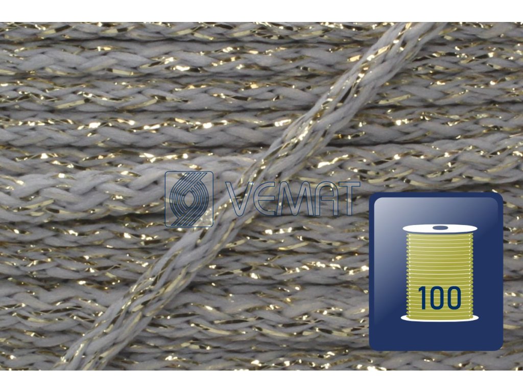 PES 4mm-stříbr.šedá/lurex zlato-cívka 100m