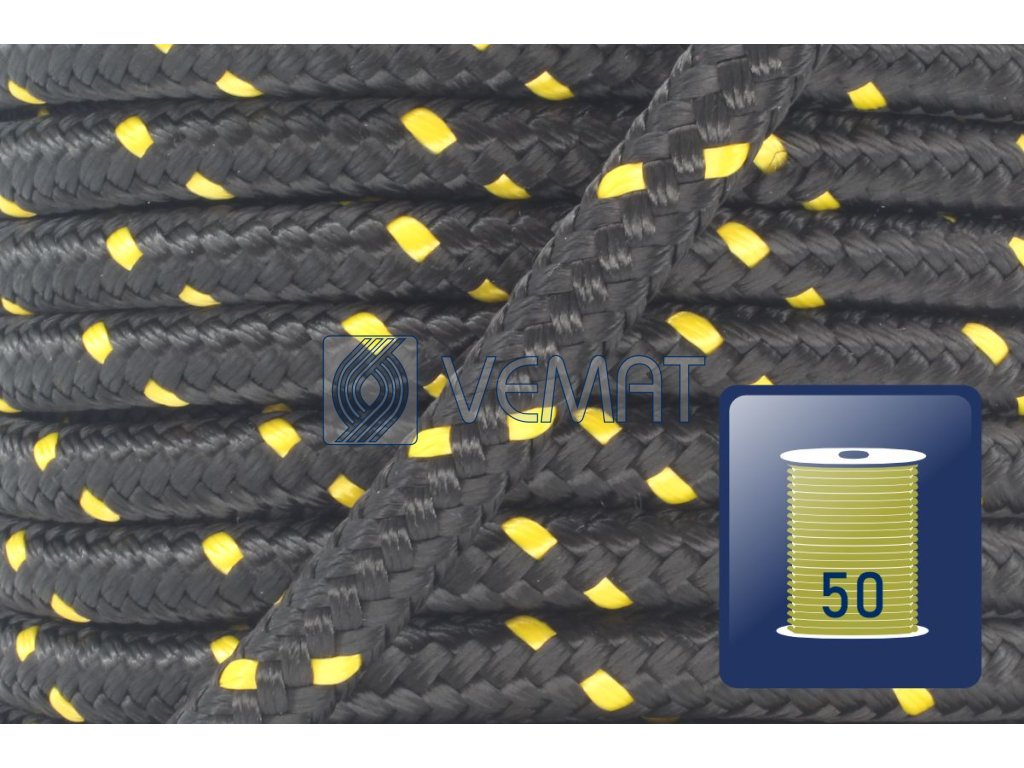 PP 16-pr.s jádrem 12mm-černá/žlutá-cívka 50m