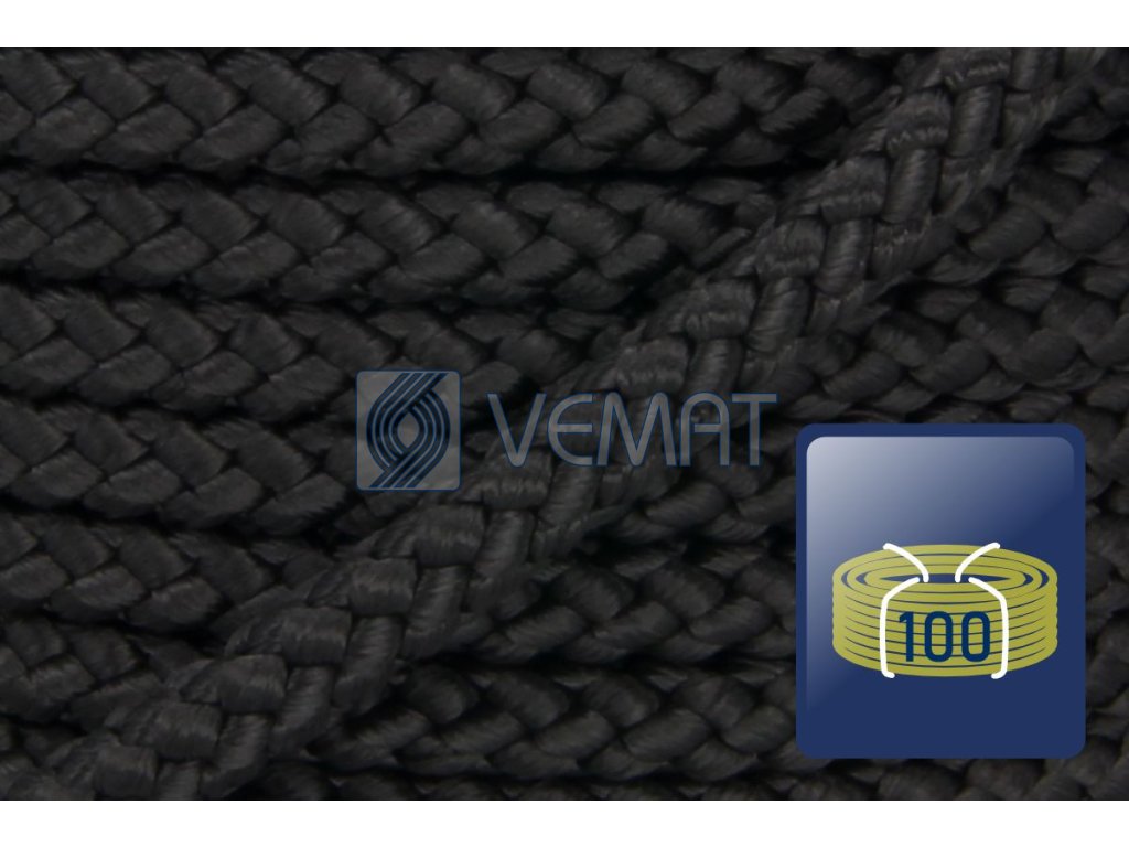 Osmipramenná šňůra bez jádra o průměru 14 mm, vyrobená technologií splétání. Protože je vyrobená z polypropylenu, který má hustotu nižší než voda, plave na vodě.