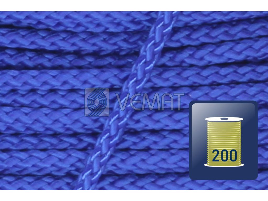Splétaná osmipramenná šňůra o průměru 3 mm. Protože je vyrobená z polypropylenu, který má hustotu nižší než voda, plave na vodě.
