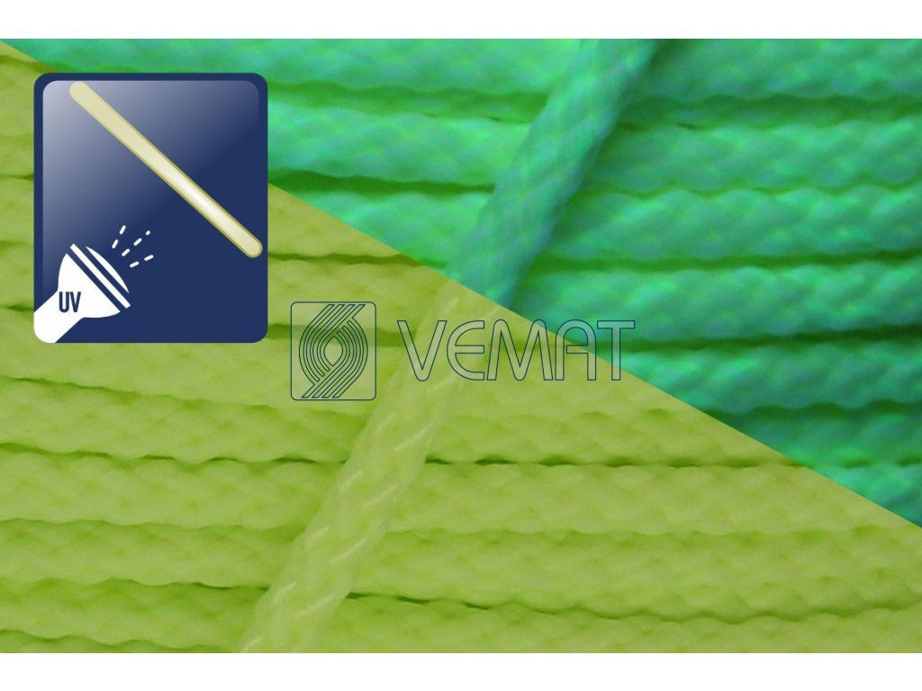Splétaná osmipramenná šňůra o průměru 3 mm. Protože je vyrobená z polypropylenu, který má hustotu nižší než voda, plave na vodě.