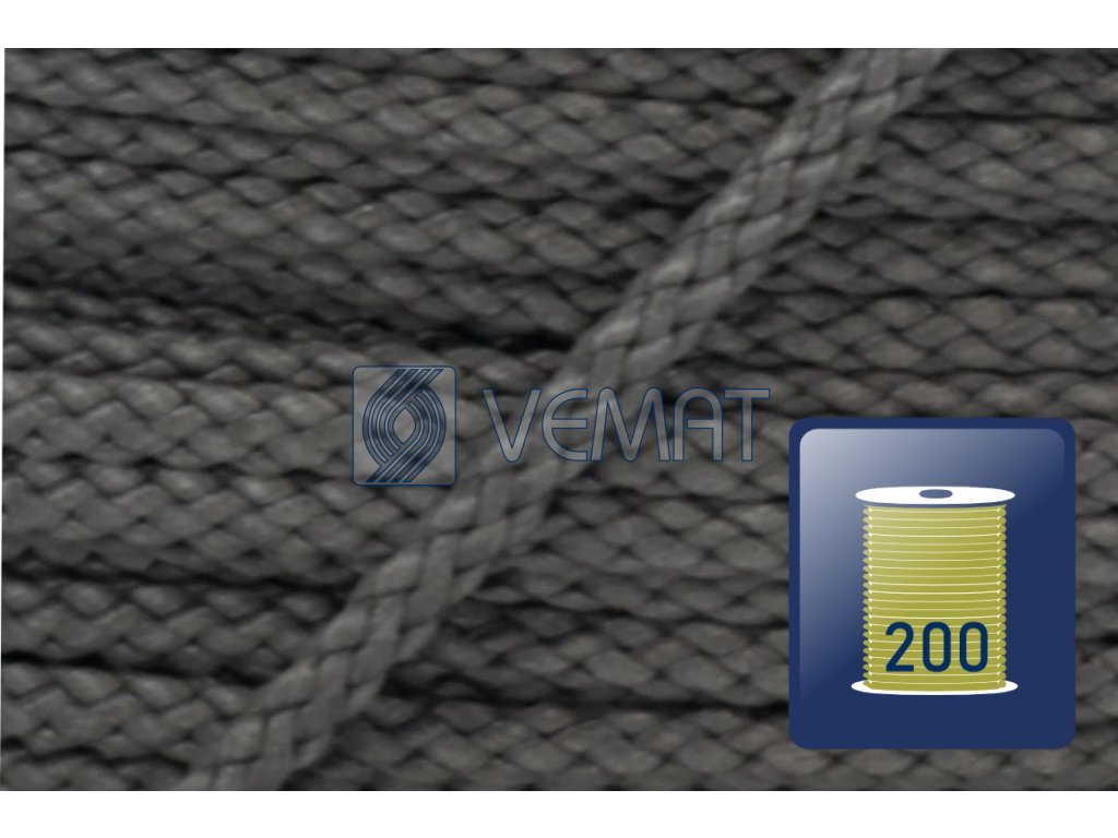 Splétaná osmipramenná šňůra o průměru 3 mm. Protože je vyrobená z polypropylenu, který má hustotu nižší než voda, plave na vodě.