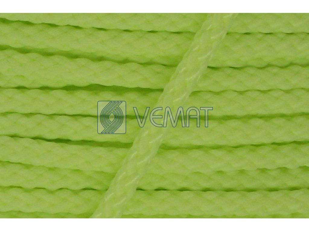 Splétaná osmipramenná šňůra o průměru 4 mm. Protože je vyrobená z polypropylenu, který má hustotu nižší než voda, plave na vodě.