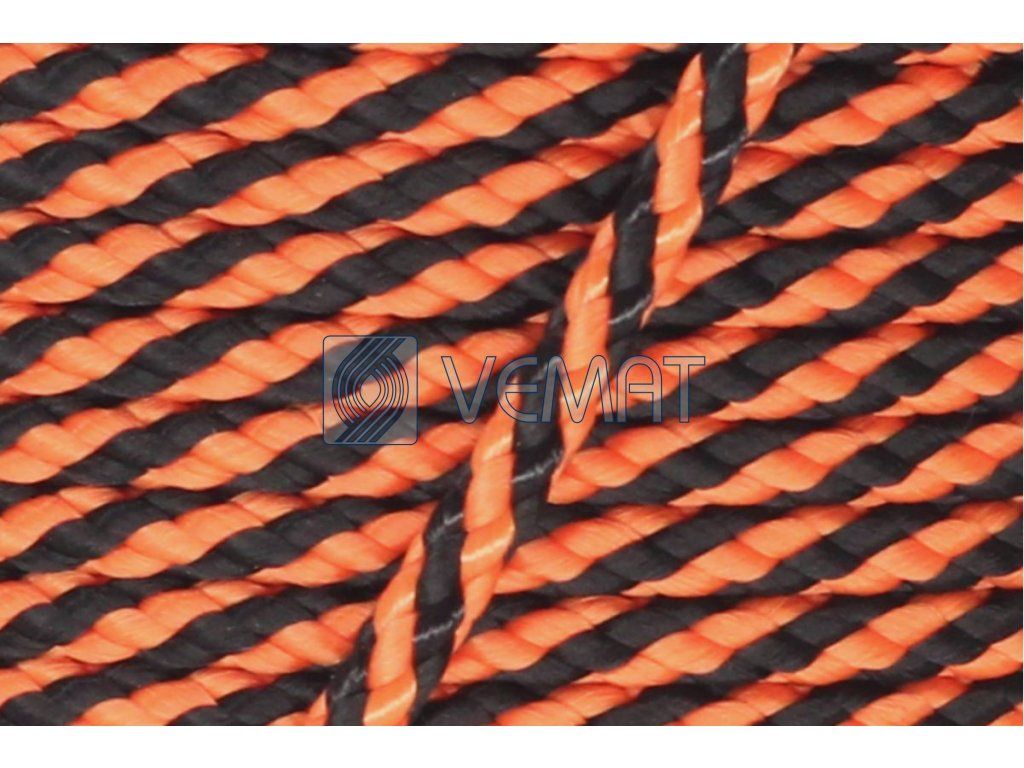 Splétaná osmipramenná šňůra o průměru 4 mm. Protože je vyrobená z polypropylenu, který má hustotu nižší než voda, plave na vodě.