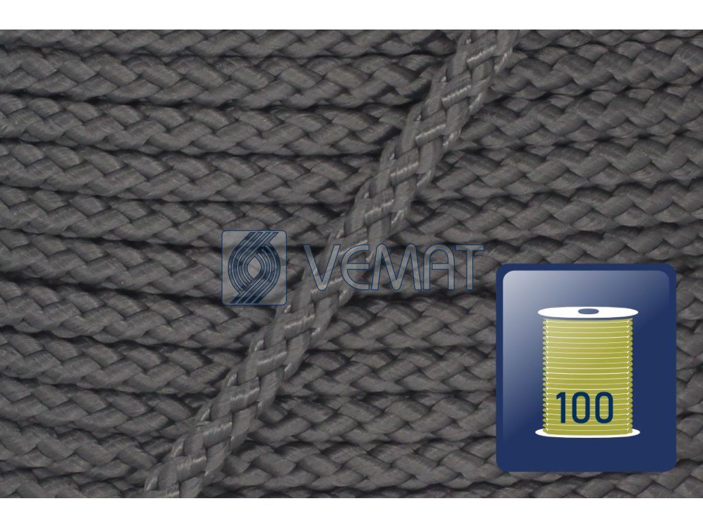 Splétaná osmipramenná šňůra o průměru 4 mm. Protože je vyrobená z polypropylenu, který má hustotu nižší než voda, plave na vodě.
