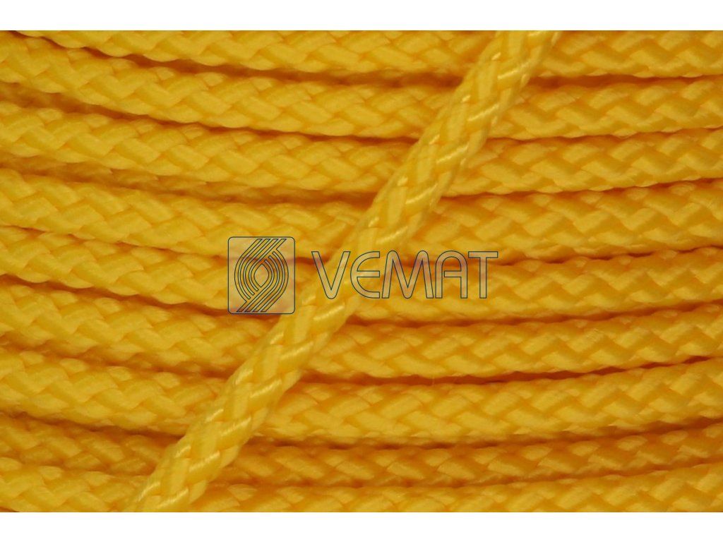 Splétaná osmipramenná šňůra o průměru 4 mm. Protože je vyrobená z polypropylenu, který má hustotu nižší než voda, plave na vodě.
