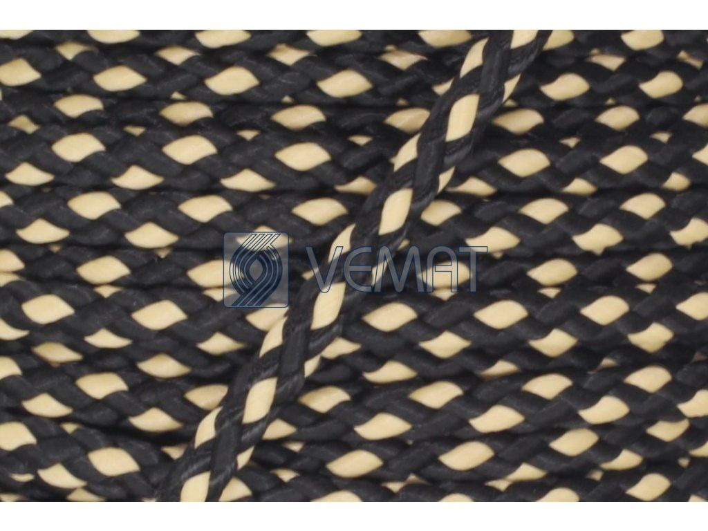 Splétaná osmipramenná šňůra o průměru 6 mm. Protože je vyrobená z polypropylenu, který má hustotu nižší než voda, plave na vodě.