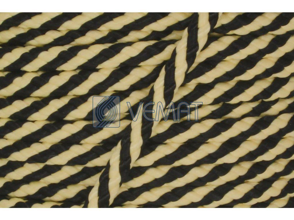 Splétaná osmipramenná šňůra o průměru 6 mm. Protože je vyrobená z polypropylenu, který má hustotu nižší než voda, plave na vodě.