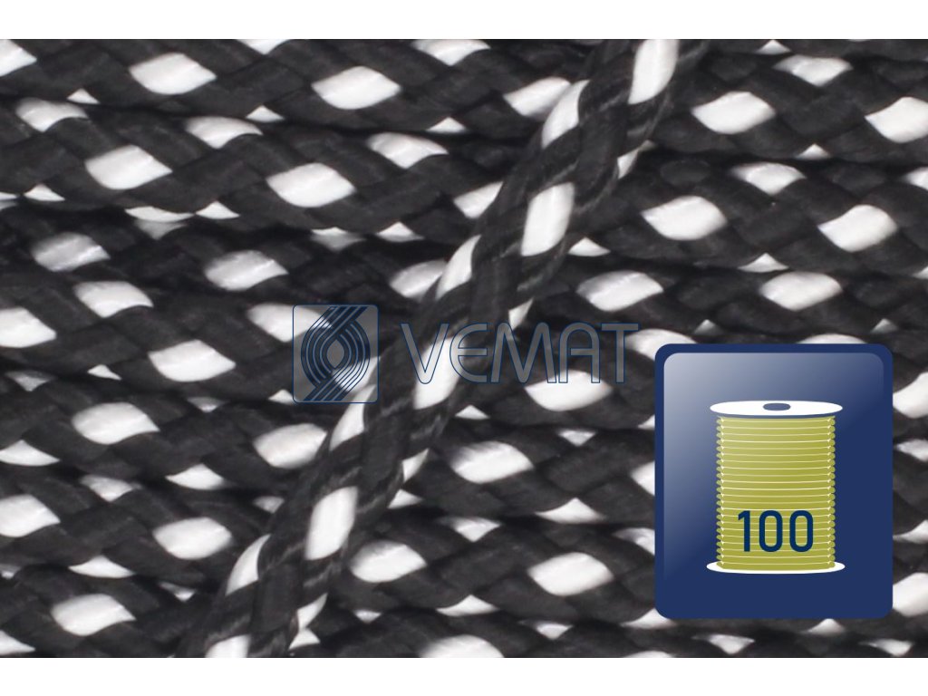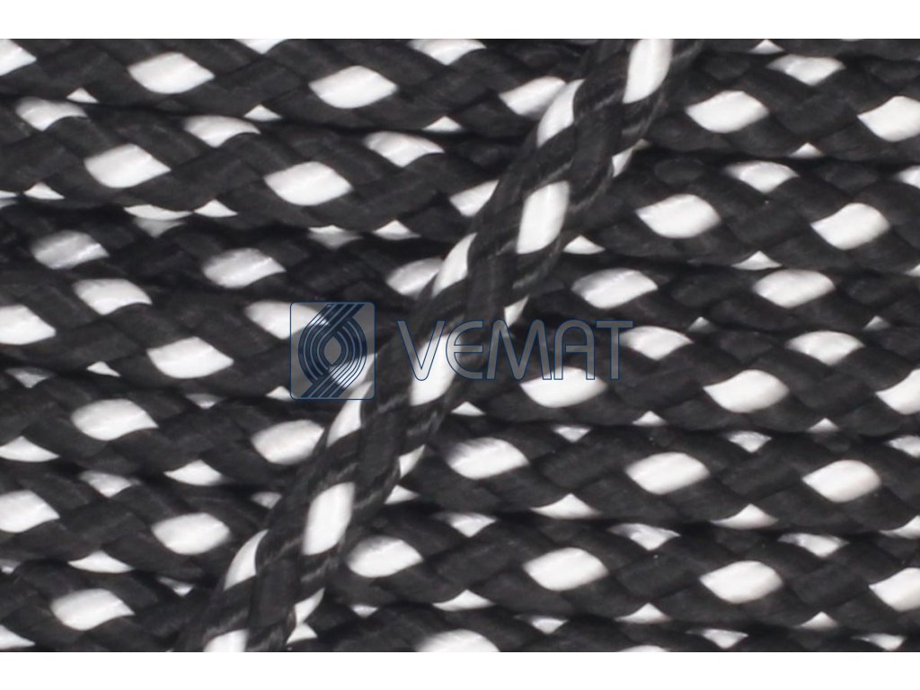 Splétaná osmipramenná šňůra o průměru 6 mm. Protože je vyrobená z polypropylenu, který má hustotu nižší než voda, plave na vodě.