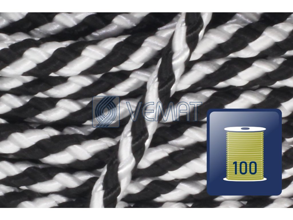 Splétaná osmipramenná šňůra o průměru 6 mm. Protože je vyrobená z polypropylenu, který má hustotu nižší než voda, plave na vodě.