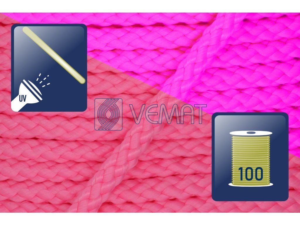 Splétaná osmipramenná šňůra o průměru 6 mm. Protože je vyrobená z polypropylenu, který má hustotu nižší než voda, plave na vodě.