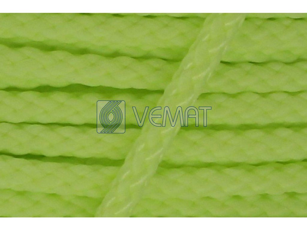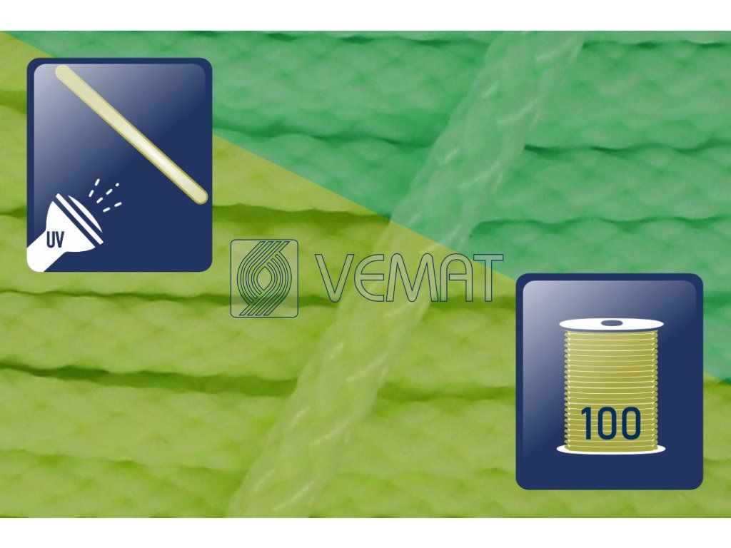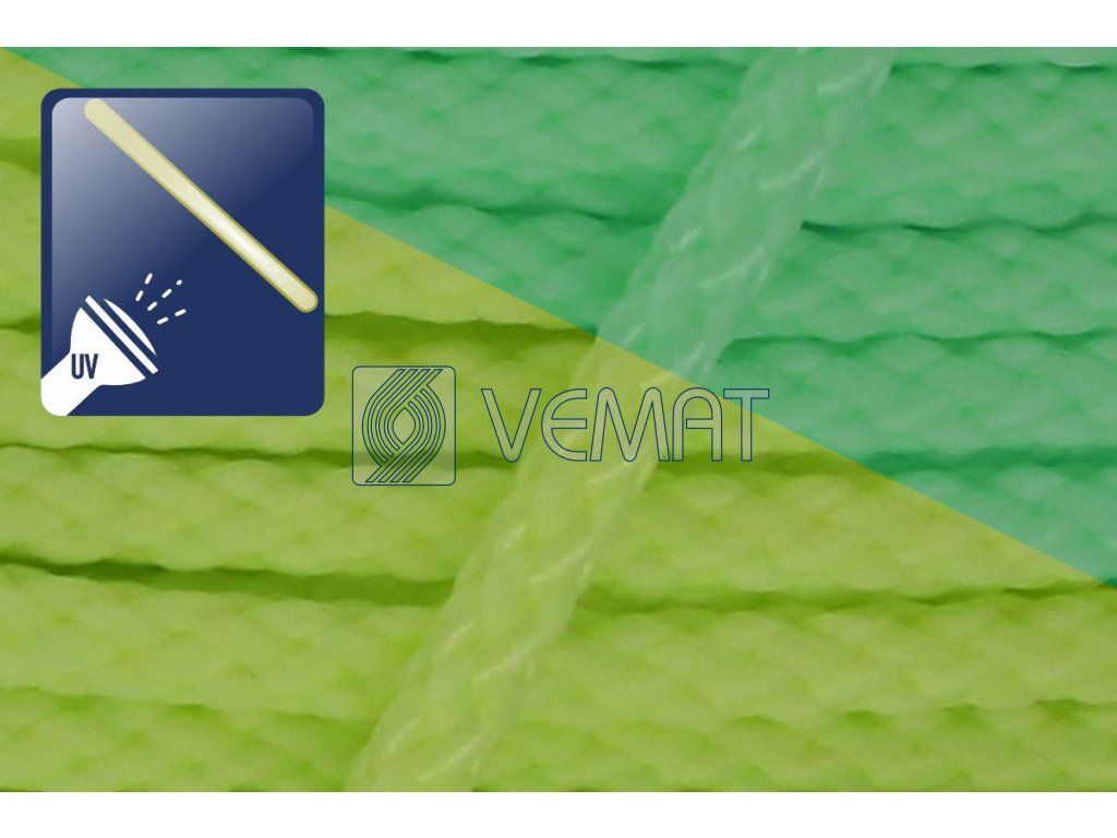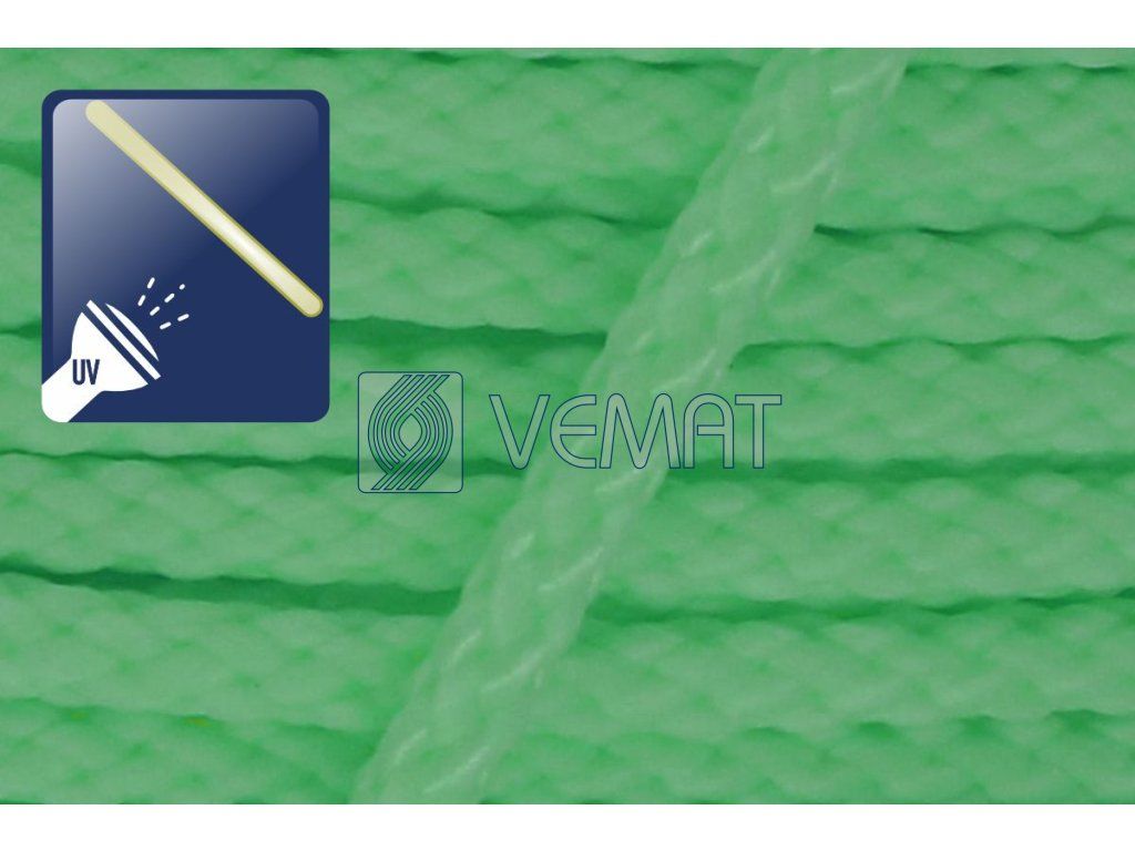 Splétaná osmipramenná šňůra o průměru 6 mm. Protože je vyrobená z polypropylenu, který má hustotu nižší než voda, plave na vodě.