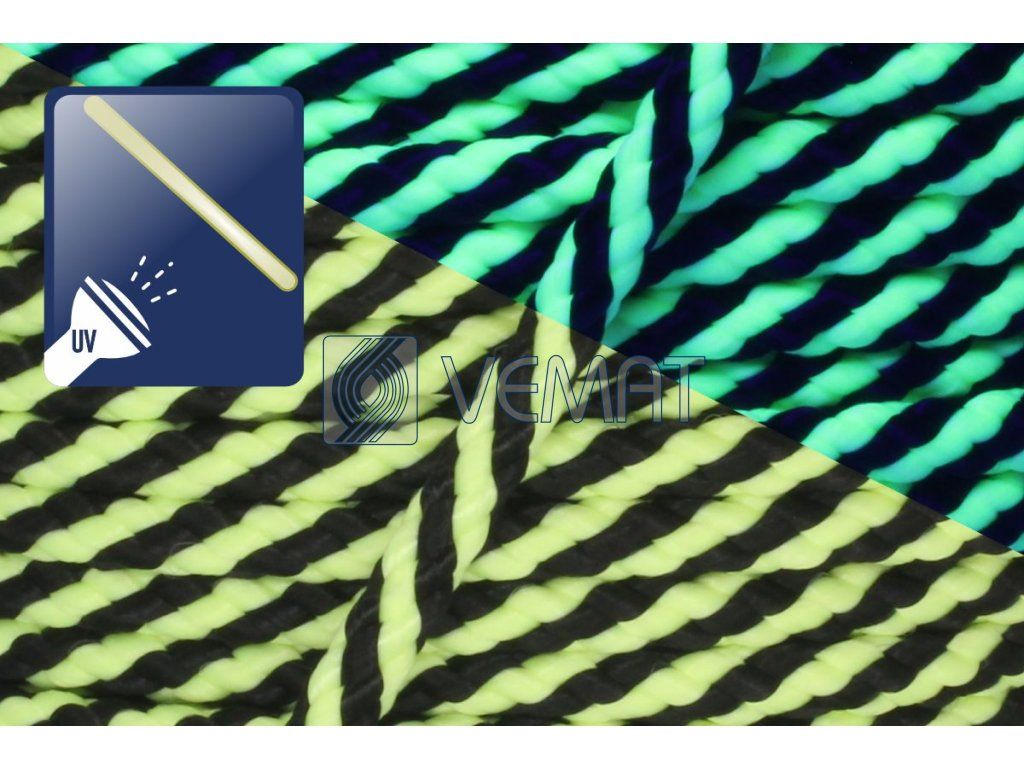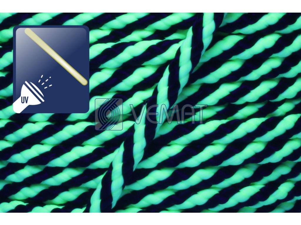 Splétaná osmipramenná šňůra o průměru 6 mm. Protože je vyrobená z polypropylenu, který má hustotu nižší než voda, plave na vodě.