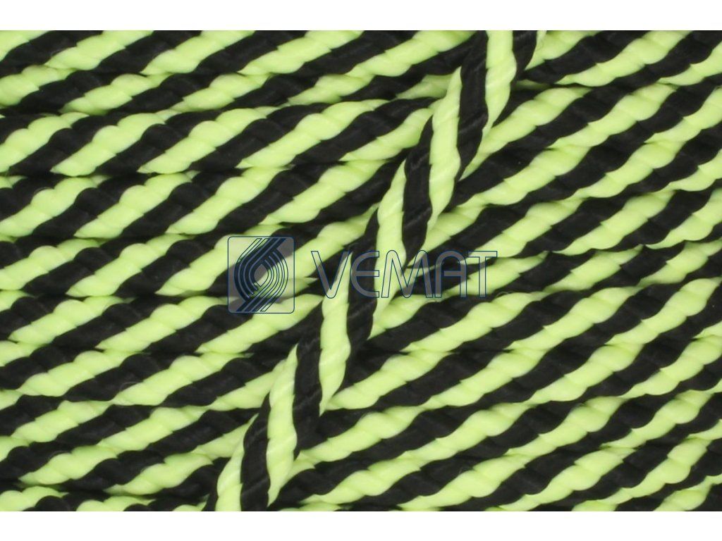Splétaná osmipramenná šňůra o průměru 6 mm. Protože je vyrobená z polypropylenu, který má hustotu nižší než voda, plave na vodě.