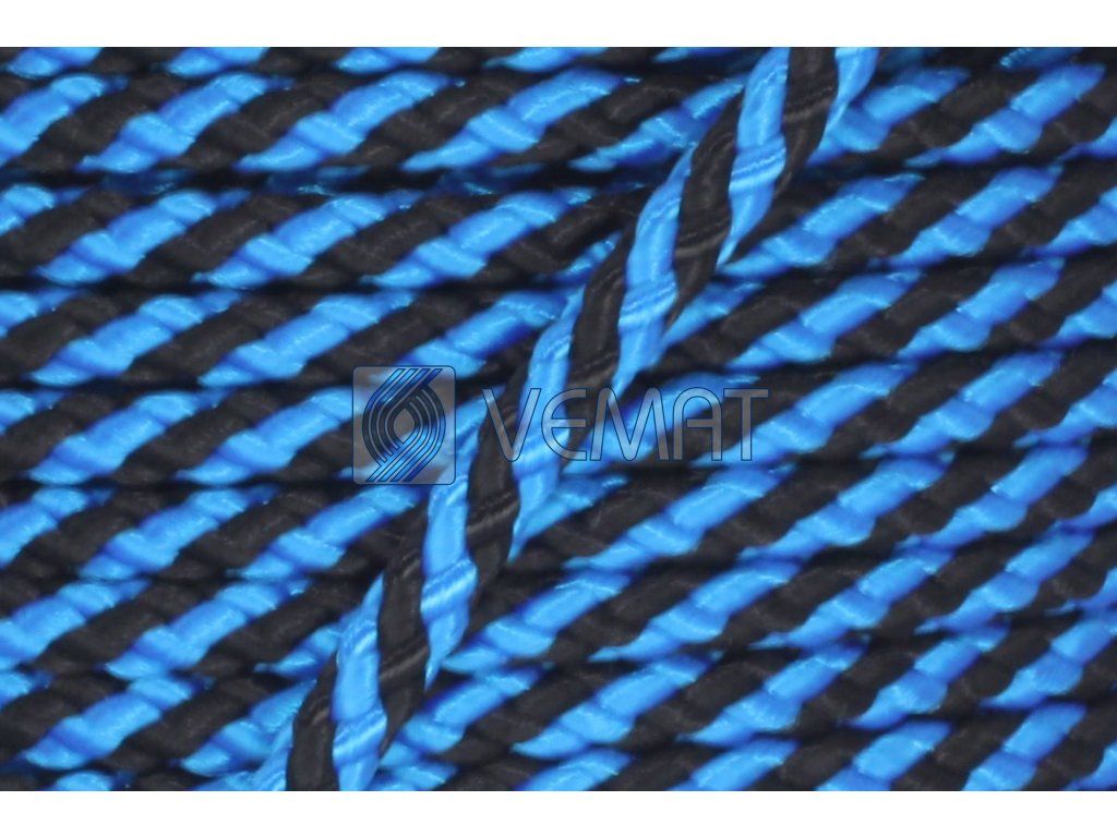 Splétaná osmipramenná šňůra o průměru 6 mm. Protože je vyrobená z polypropylenu, který má hustotu nižší než voda, plave na vodě.