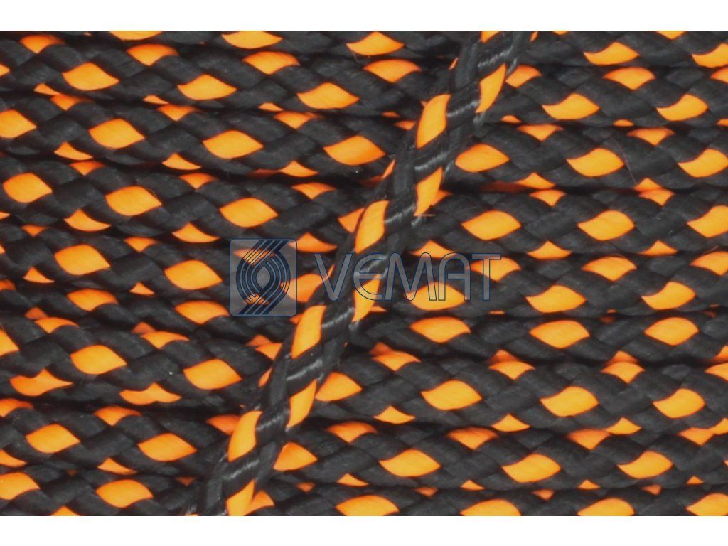 Splétaná osmipramenná šňůra o průměru 6 mm. Protože je vyrobená z polypropylenu, který má hustotu nižší než voda, plave na vodě.