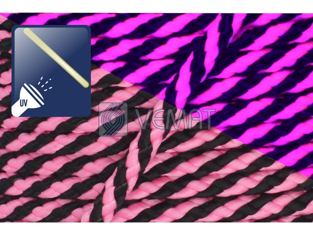 Splétaná osmipramenná šňůra o průměru 6 mm. Protože je vyrobená z polypropylenu, který má hustotu nižší než voda, plave na vodě.